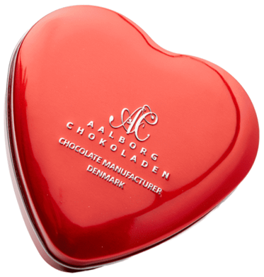 Aalborg Chokolade - Hjerteæske i metal med fyldte chokoladehjerter
