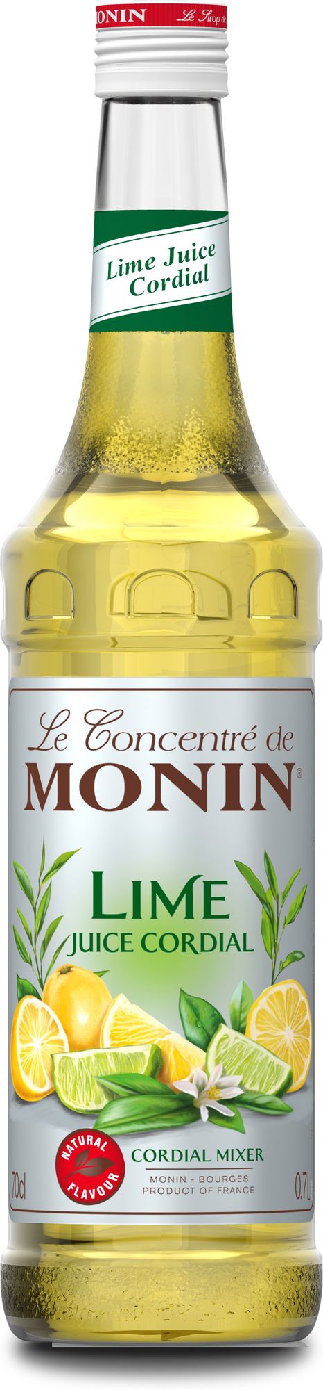 Monin sirup - Mix af limejuice, citronjuice og sukker, hvor juicemængden udgør minimum 50%. Som cordial har den et mindre sukkerindhold end en sirup og er perfekt i cocktails som margaritas, Mai Tais eller Gin & Tonics. Men overvej den lige i en sodavand, te eller punch.1 flaske indeholder 70 cl.