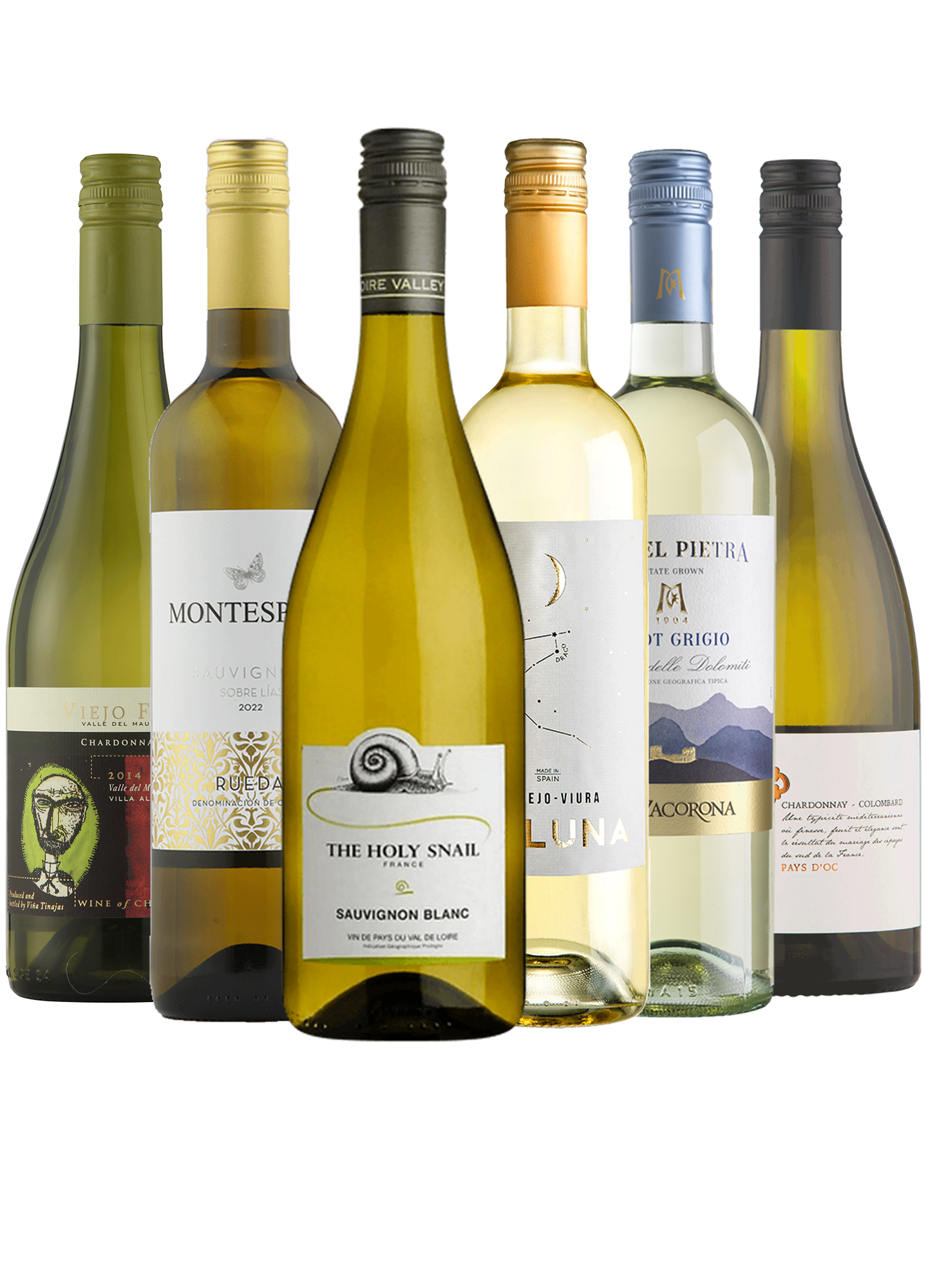 Prøv denne lækre smagekasse - 6 forskellige hvidvine fra henholdsvis Frankrig, Chile og Spanien.
